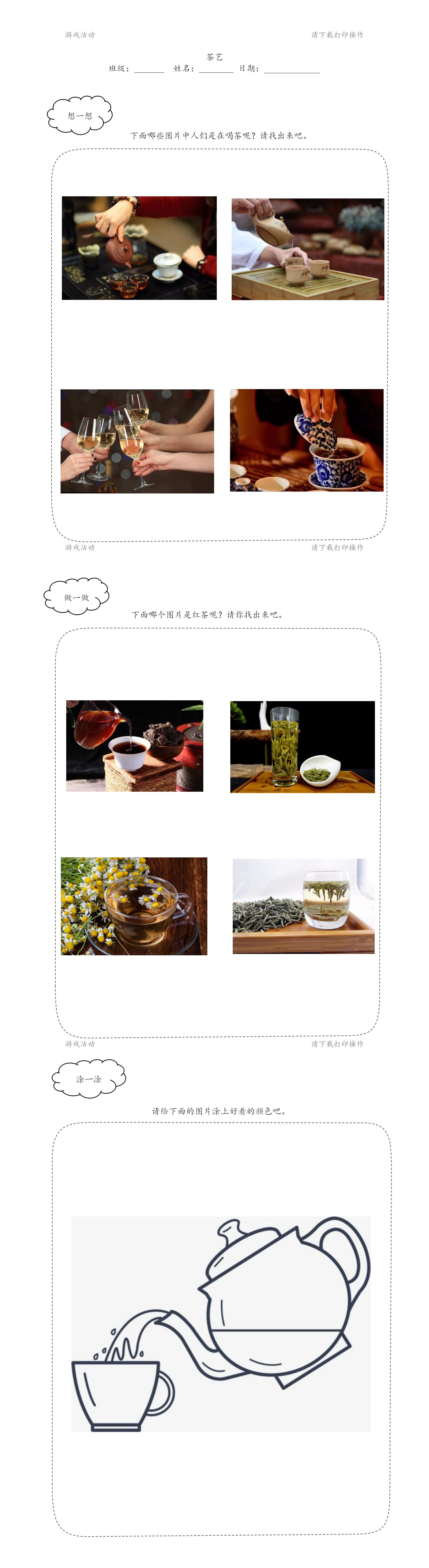 经验准备:生活中知道一些茶的简单知识。