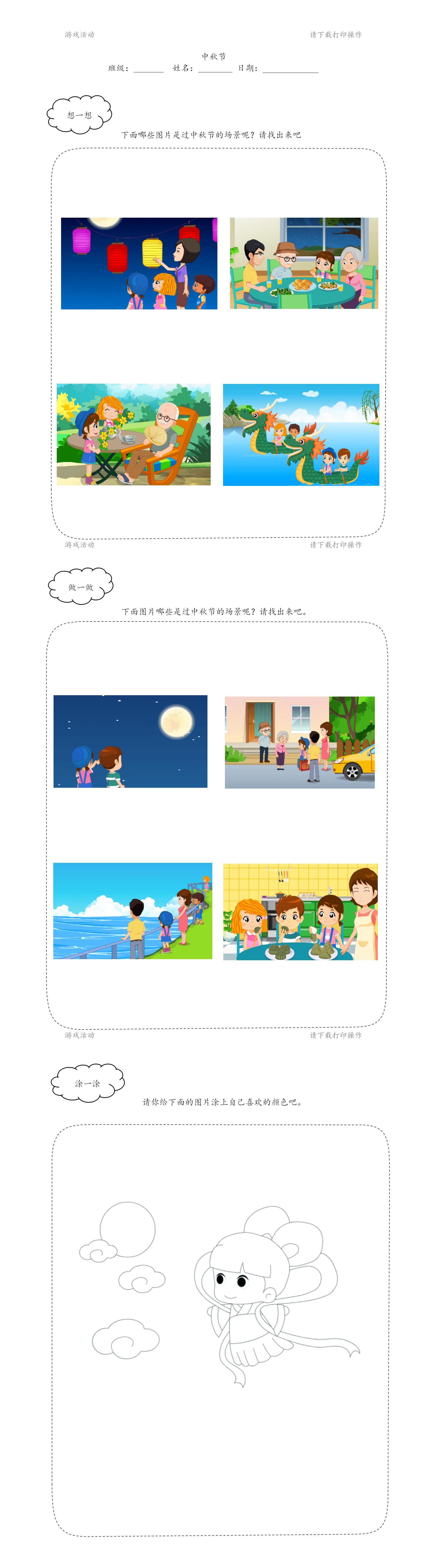 活动重点:了解中秋节的时间及风俗习惯。