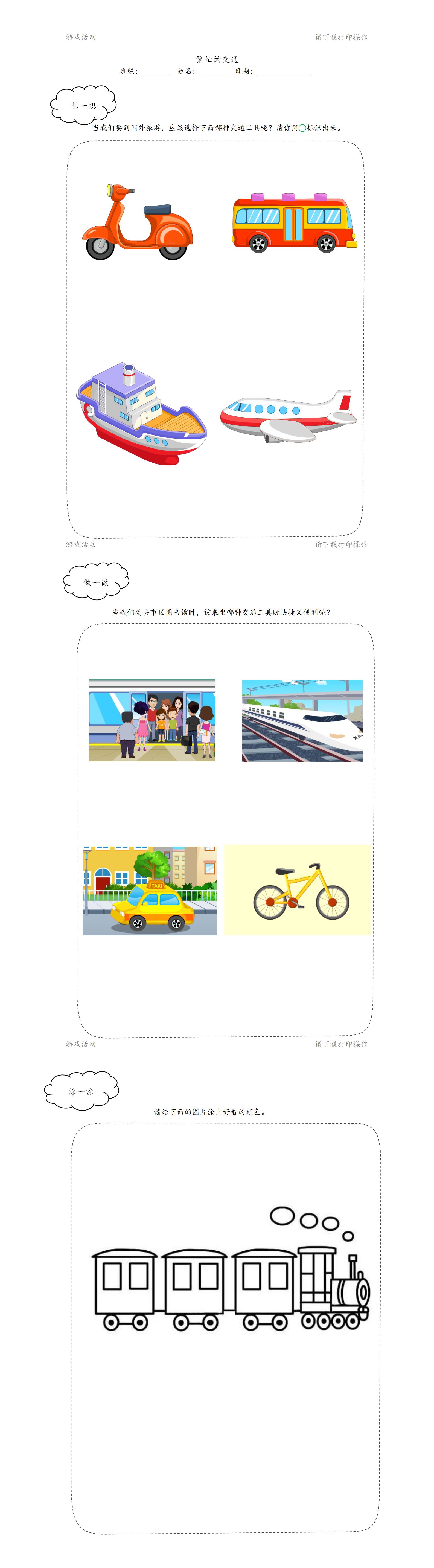 经验准备:乘坐过多种交通工具的体验。