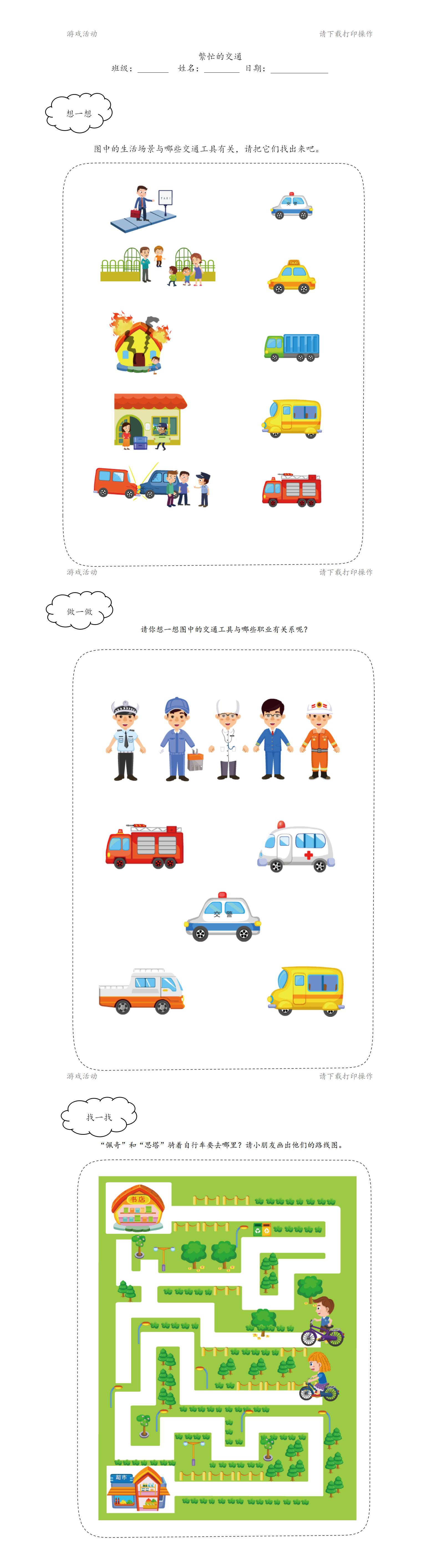 活动难点:了解各种交通工具的用途。
