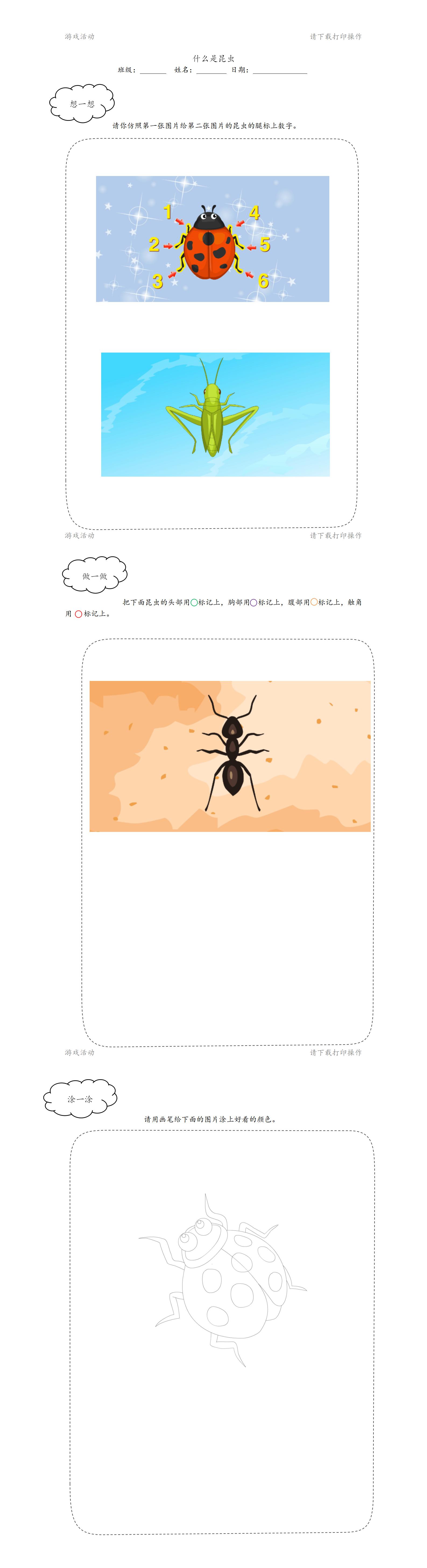 活动延伸:鼓励幼儿在生活中多观察昆虫。