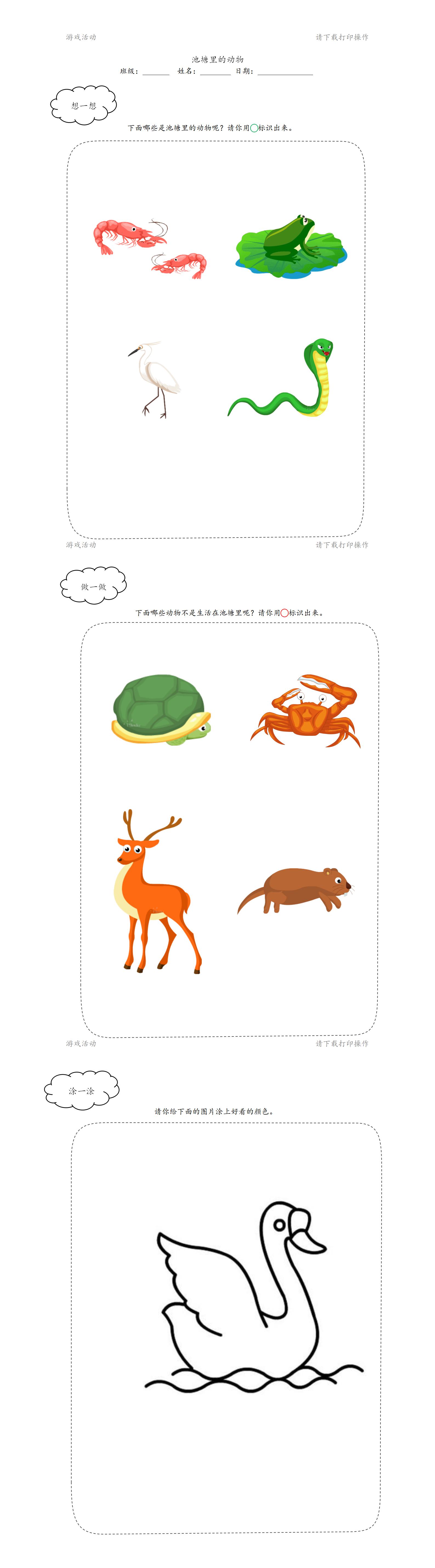 活动重点:认识池塘里常见的小动物。