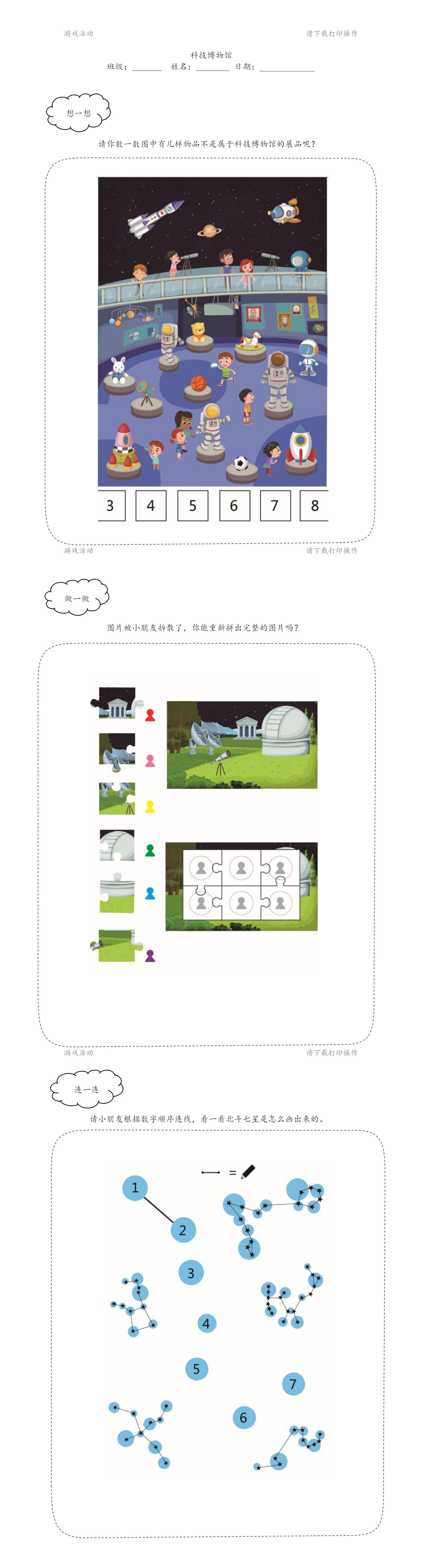 活动延伸:老师或者家长组织幼儿到科技博物馆进行参观,或者观看科技博物馆的纪录片。